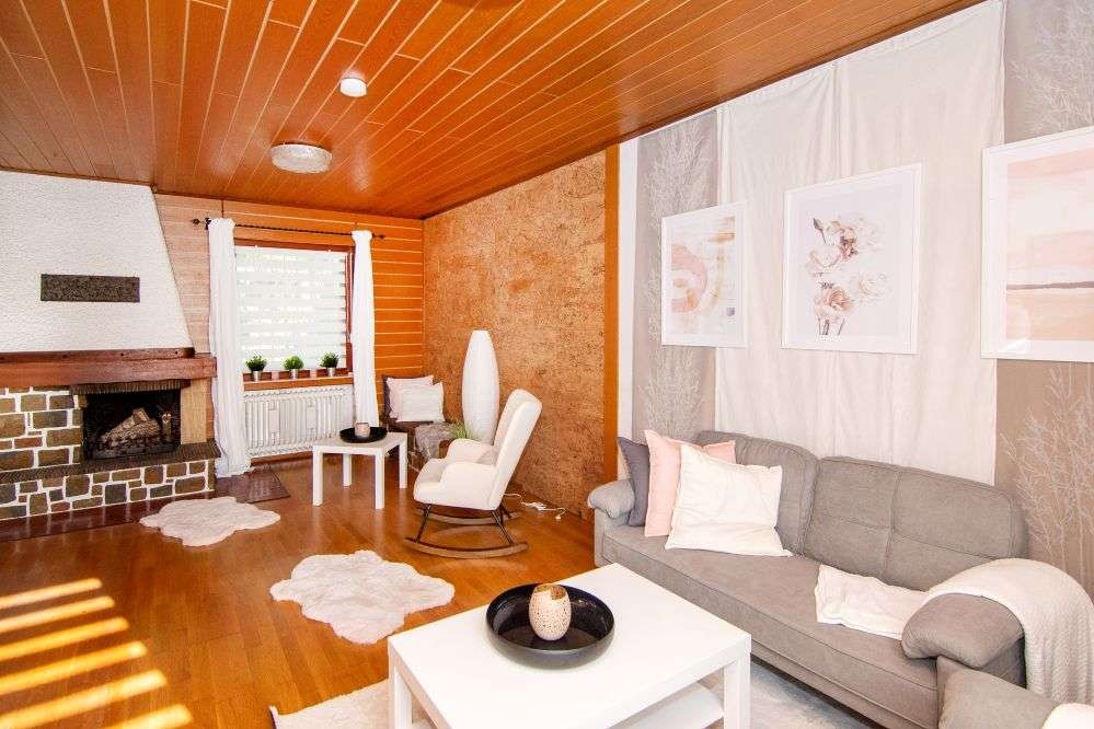 Im Erdgeschoss erwartet Sie die große Wohnküche, ein gemütliches Wohnzimmer, das große Bad sowie ein weiteres Zimmer im Anbau, das früher als Küche genutzt wurde. Das erste Obergeschoss bietet drei großzügige Räume und ein kleineres Bad, das mit der richtigen Planung sicherlich vergrößert werden kann. Zusätzlich gibt es einen begehbaren Speicher, der weiteren Raum für kreative Ideen schafft.